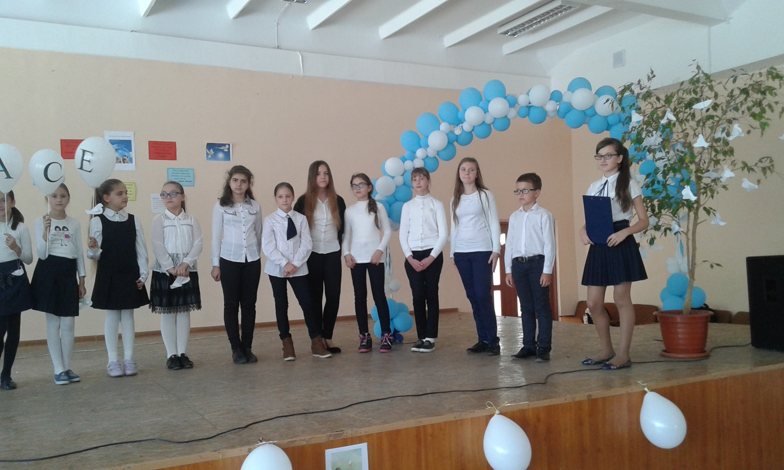 “Pacea nu este absenţa războiului. Este o virtute, o dispoziţie spre bunăvoinţă, încredere, dreptate”(Baruch Spinoza) cu acest motto s-a petrecut  activitatea extracuriculară la IP LT „Traian” din Chişinău.  În parteneriat cu Federaţia Mondială a Femeilor din Republica Moldova  elevii claselor a V-a A, VI-a A şi a VI-a B împreună cu diriginţii de clasă au organizat  o serată inchinată Zilei Internaţionale a Păcii.