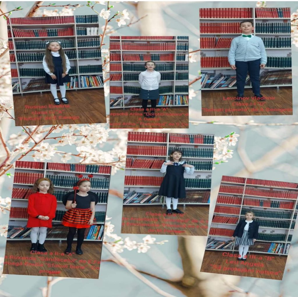 Natura a fost slăvită prin versuri de numeroși poeți. Micii învățăcei ai claselor a I – a III-a, în calitate de ,,ambasadori” ai unui mediu curat și verde, au recitat poezii pe Scena Declamatorilor, gazdă fiind Biblioteca liceului.