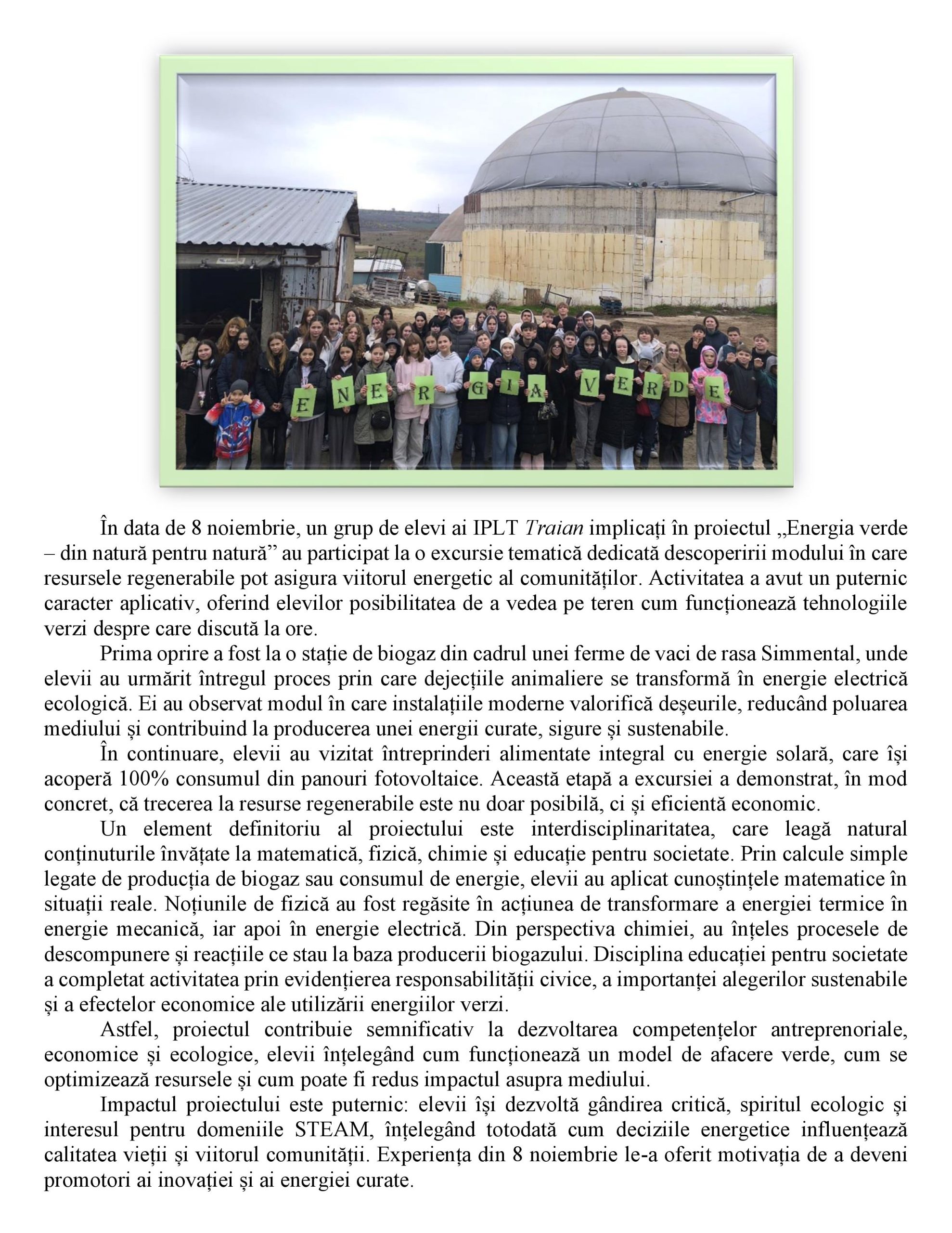 Excursie educativă: „Energia verde – din natură pentru natură”