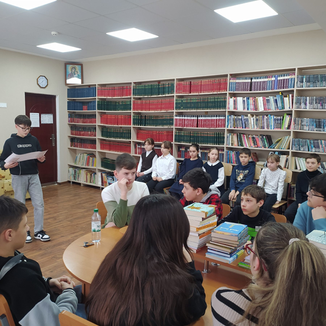 În fiecare an, pe data de 14 februarie, se celebrează Ziua Națională a Lecturii. Anul acesta, am decis să organizăm și desfășurăm o activitate interactivă, care să întrunească elevi din diferite clase, pasionați de arta cuvântului, dornici de a-și lărgi orizonturile cunoașterii. Participanți: scriitoarea Maria Pilchin, profesoara Lungu Lidia, bibliotecarele Cucereavâi Tatiana și Mocanu Aliona, elevi din IPLT „Traian”.