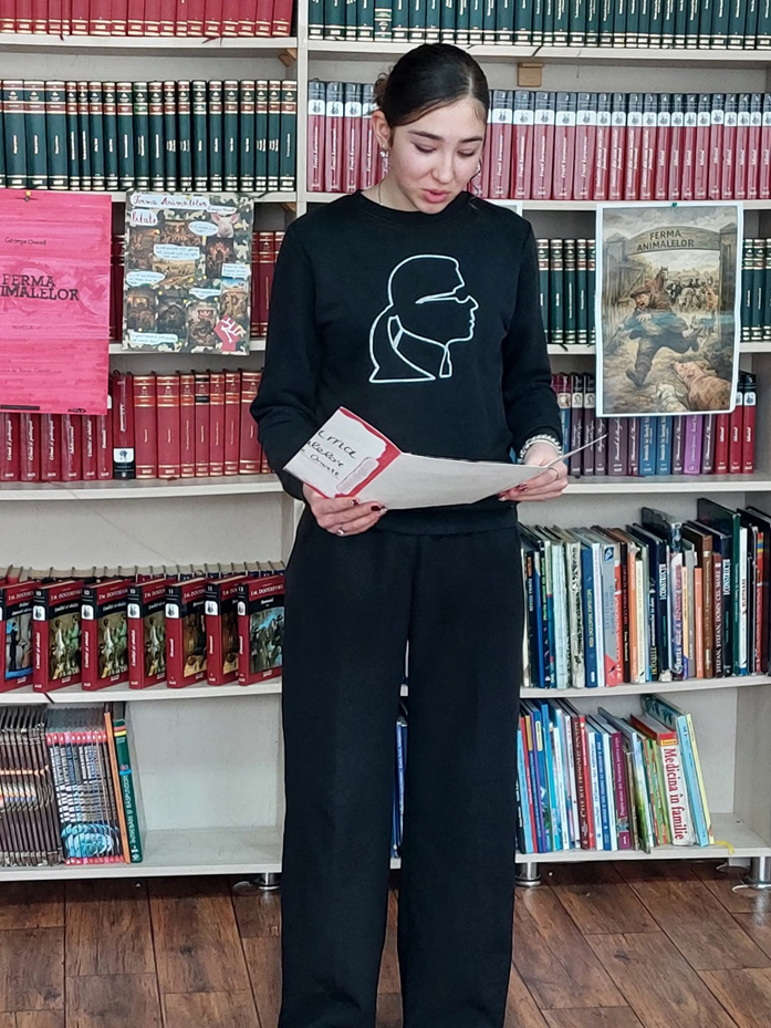 Așadar, în contextul acestei zile importante, a avut loc un club de lectură „PRUT-așii”, moderat de poeta, prozatoarea, criticul literar, Maria Pilchin. Un grup de elevi din clasele a VIII-a „A”, a IX-a „D” și a X-a „C”, ghidați de profesoara de limba și literatura română, Lidia Lungu, au discutat înflăcărat asupra conținutului nuvelei-parabole a lui George Orwell, „Ferma animalelor”, un text care satirizează absurditatea regimului totalitarist stalinist. Prin urmare, acest eveniment poate fi considerat și o activitate transdisciplinară, întrucât îmbină literatura și istoria universală, discipline care adeseori se interpun/suprapun și/sau se contopesc.